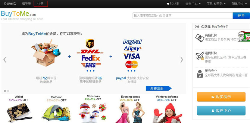 www.buytomwww.buytome.com 专业服务海外华人的淘宝代购网站,一站式购买淘宝taobao、拍拍、当当等中国商品。服务费低,集中运输让运费省上加省,是新加坡代购,马来西亚代购及其他海外华人代购中国的首选代购网。